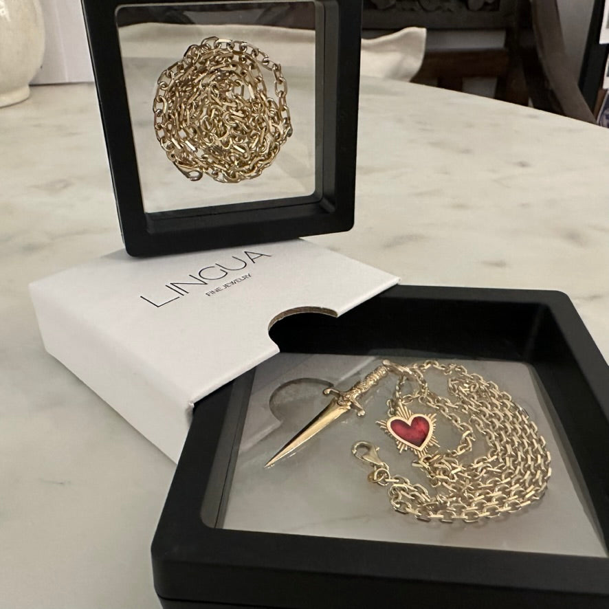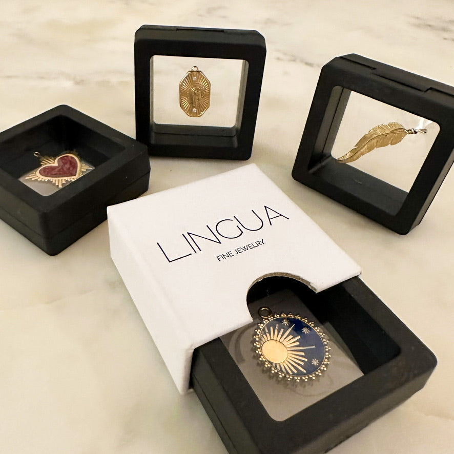 LINGUA is a luxury fine jewelry brand handcrafted entirely in NYC. We offer a collection of distinctive 14K gold & enamel charms, each with its own power & meaning, designed to feel like modern heirlooms with an edge.